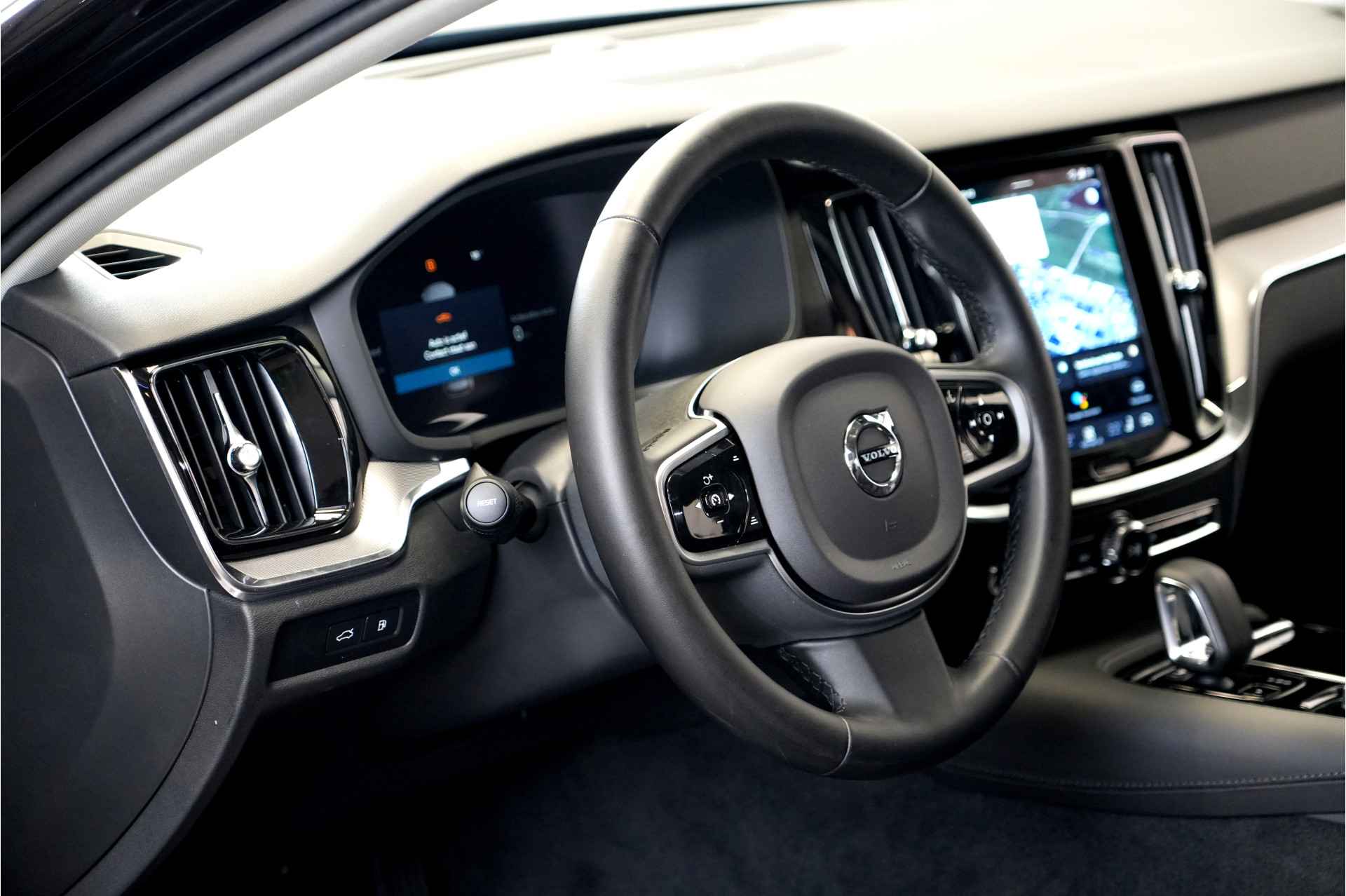 Met z'n extra elektromotor geeft de hybride Volvo V60 een heel nieuwe dimensie aan het rijden. Een krachtige motor geeft deze auto zijn sportieve prestaties. Altijd al een 4WD gewild? Dat kan nu! Deze auto is voorzien van vierwielaandrijving. Deze Volvo V60 is luxe afgewerkt. Kijk maar naar het lederen interieur! Dankzij de elektrische stoelbediening is het gemakkelijk om de optimale zitpositie te vinden. Zelfs als het buiten ijzig koud is, kunnen zowel de bestuurder als de passagiers op de achterbank snel opwarmen, dankzij de verwarmbare stuurwiel en de achterbankverwarming. De elektrisch bedienbare achterklep opent met een druk op de knop. Tot de uitrusting van deze Volvo behoren ook 19 inch lichtmetalen velgen, LED koplampen, warmtewerend glas, drive mode control, dakspoiler en in delen neerklapbare achterbank.