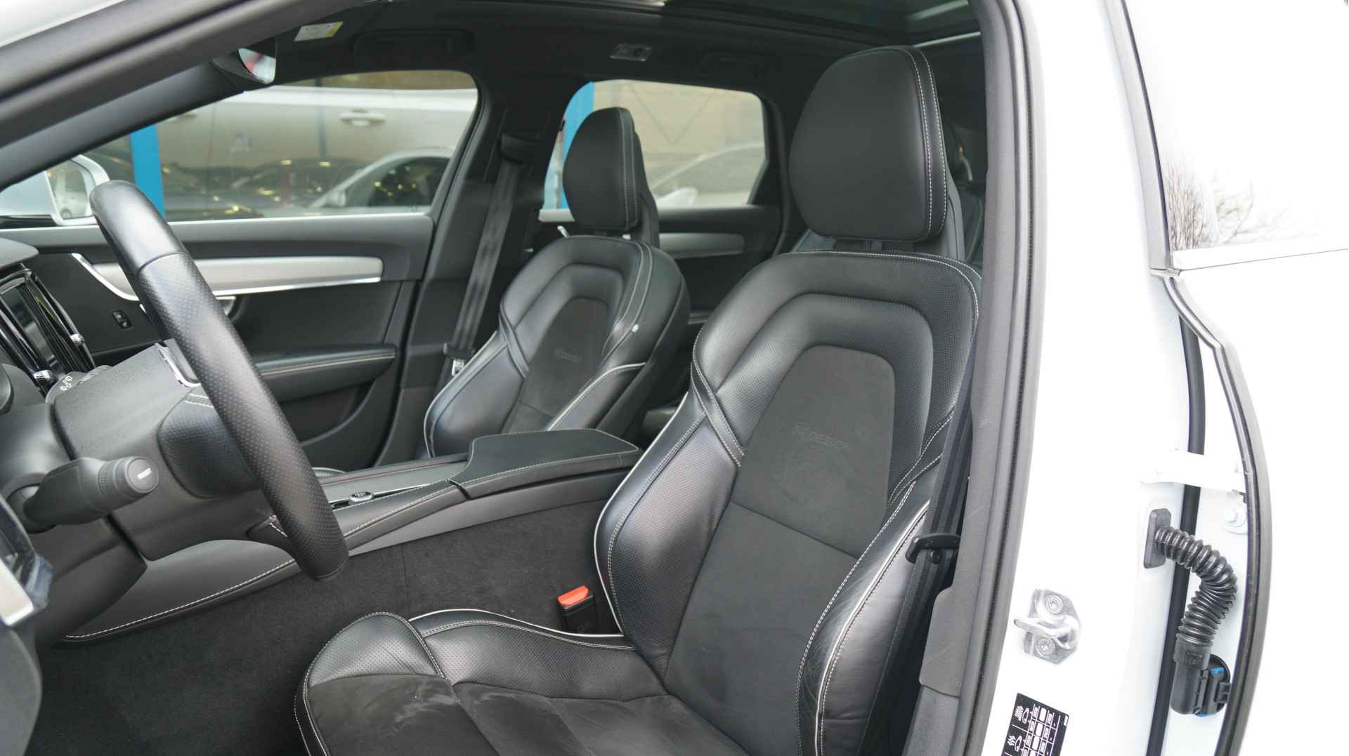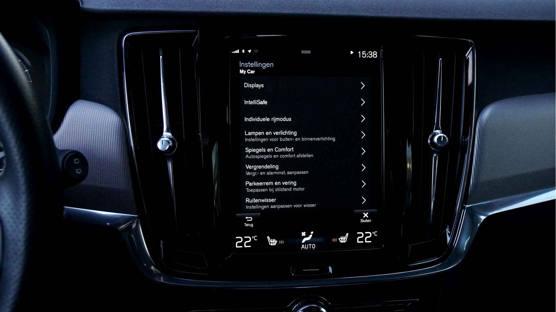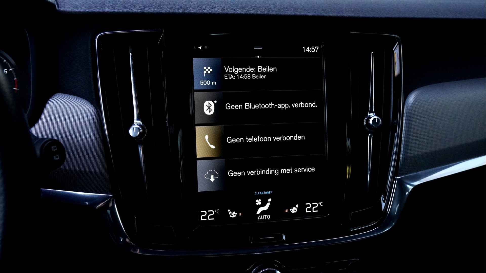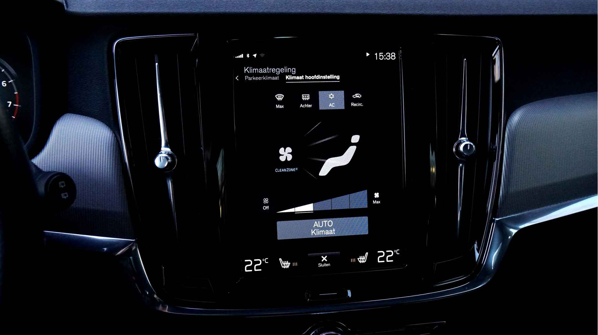 Hoog, laag, midrange: het high performance audiosysteem is volledig afgestemd op de akoestiek in deze auto. Verder is het systeem uitgerust met: bluetooth met audiostreaming, in dashboard opgenomen navigatiesysteem, multifunctioneel sportstuur, dashboard met spraakbediening en usb-aansluiting. De climate control links en rechts gescheiden zorgt onder alle omstandigheden voor een prettige temperatuur. Het hoort bij een intelligente auto als deze dat hij zelf in staat is om zijn omgeving in de gaten te houden. Dat doet deze Volvo niet alleen met een automatisch inschakelbare verlichting en een regensensor, maar hij beschikt bovendien over adaptive cruise control. En op de plaats van bestemming zijn het de parkeersensoren achter die u helpen bij het inparkeren. De achteropkomend verkeer waarschuwing geeft een signaal als degene achter u te dicht op u zit. Ook handig en veilig bij het wisselen van rijbaan. Makkelijk en veilig is de keyless start. Met de elektronische sleutel op zak start u de auto met enkel een druk op de knop. De uitrusting van deze Volvo is met lederen versnellingspook, in hoogte en diepte verstelbaar stuur, automatisch dimmende buitenspiegels, boordcomputer, dashboard met aluminium inleg, houtinleg in het interieur, isofix-aansluiting, centrale deurvergrendeling met afstandsbediening en bagage afdekhoes behoorlijk compleet.