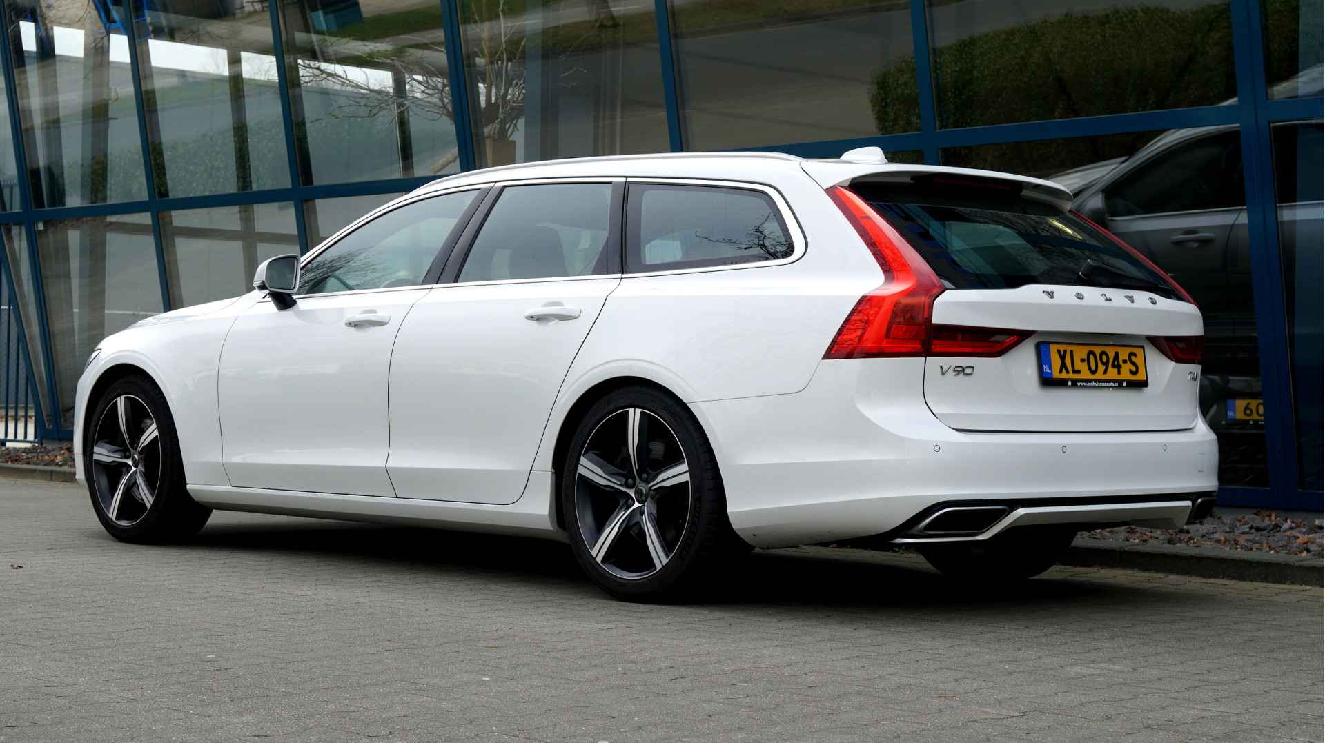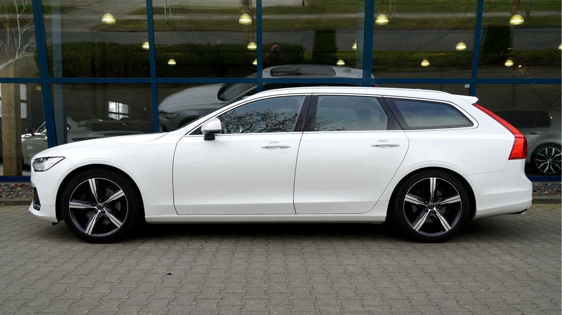 Alle technologie in de Volvo V90 is er op gericht om uw rit veilig en gemakkelijk te laten verlopen. Dit mooie, perfect onderhouden exemplaar uit 2018 heeft 72246 kilometer op de teller staan en is van de eerste eigenaar. Een 190pk sterke benzinemotor en een 8-traps automatische transmissie zorgen voor de uitstekende prestaties van deze auto. Geen gerommel bij het inladen; één druk op de knop en de elektrisch bedienbare achterklep gaat open. En precies zo gemakkelijk is het met het elektrisch bediende glazen panorama dak! U past de stoelen moeiteloos aan, ze zijn elektrisch in te stellen en hebben bovendien een geheugen. De techniek staat voor niets: het gebruiksvriendelijke dak gaat elektrisch open of dicht. Bij de uitrusting van deze auto horen onder meer 19 inch lichtmetalen velgen, drive mode control, dakspoiler, aluminium dakrails, aluminium dakrailing, warmtewerend glas, zwarte hemelbekleding, LED-achterlichten, verstelbare lendensteunen, verwarmde ruitensproeiers, elektrisch bediende ramen, elektrisch inklapbare buitenspiegels, LED-dagrijverlichting en in delen neerklapbare achterbank.