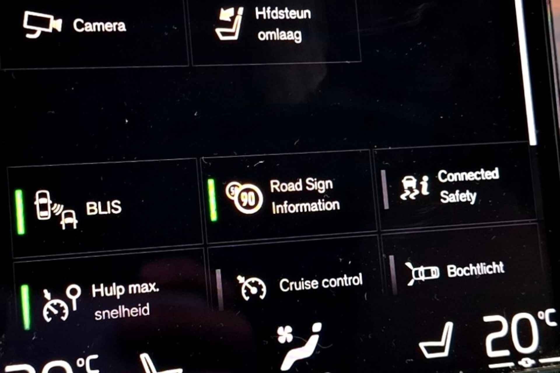 De automatische veiligheidssystemen in deze Volvo fungeren als een extra paar ogen. En dat niet alleen, ze kunnen ook actief ingrijpen, om zo u en uw passagiers te beschermen. Tijdens de rit hebt u altijd een bijrijder, want de verkeersbord-detectie leest de borden langs de weg en projecteert ze voor u op het instrumentarium. Indien u onbedoeld de rijstrook lijkt te verlaten, reageert het Lane-keeping systeem meteen en corrigeert. Voertuigen of personen buiten uw zicht kunnen gevaar opleveren. De actieve dodehoekdetectie (BLIS) waarschuwt direct. Ook helpen het City Safety System, forward collision warning system, hill hold functie, brake assist, vermoeidheidsherkenning en bandenspanningcontrolesysteem, uw rit tot een veilige rit te maken.